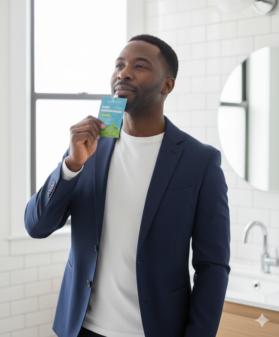 Café, repas, cigarette ou journée chargée… la mauvaise haleine peut arriver à tout moment. SIRUINI vous aide à rester frais, même sans brosse à dents.